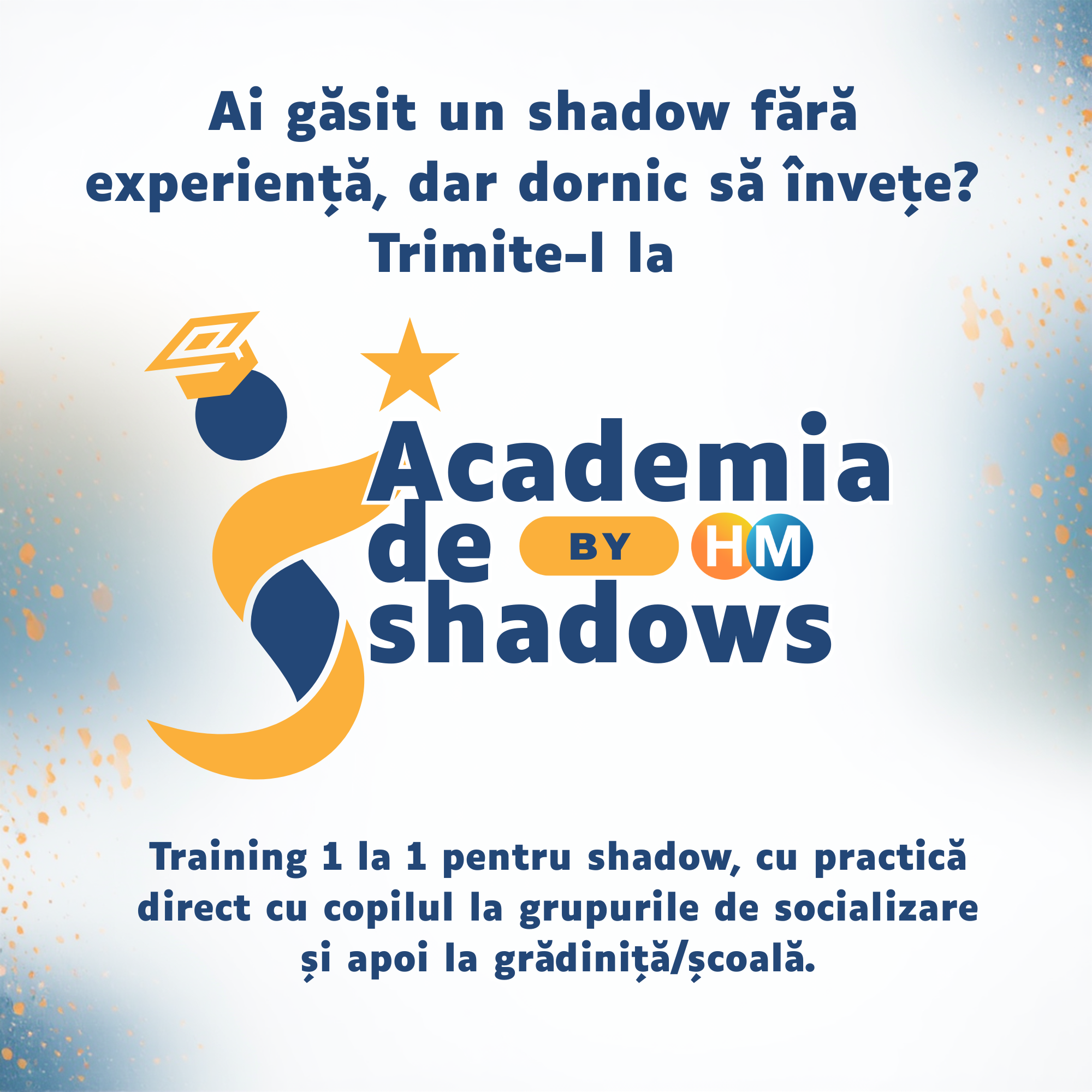 Copilul tău e pregătit să meargă la grădiniță sau la școală, dar are nevoie de suport din partea unui shadow. Ce faci? Cum alegi persoana potrivită, care să știe cum și când să intervină? Poate ai găsit deja pe cineva care nu are experiență, dar e dispus să învețe. Trimite-l la Academia de shadows by Horia Moțoi